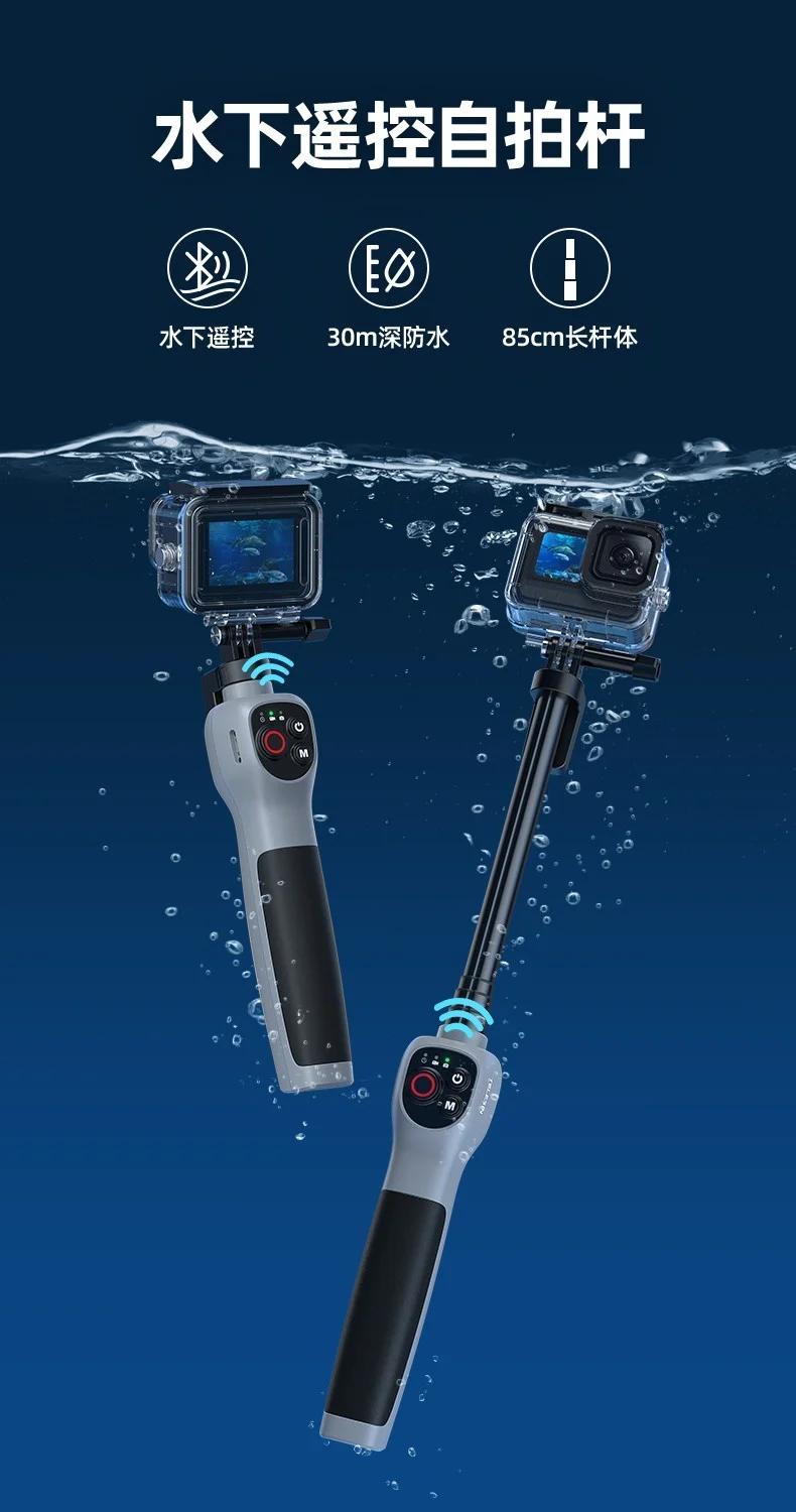 水下蓝牙自拍杆:业界首款支持水下操控的自拍神器,蓝牙技术让启停尽在掌握,解决水下拍摄难题,无论是深潜探险还是海底摄影,都能游刃有余。